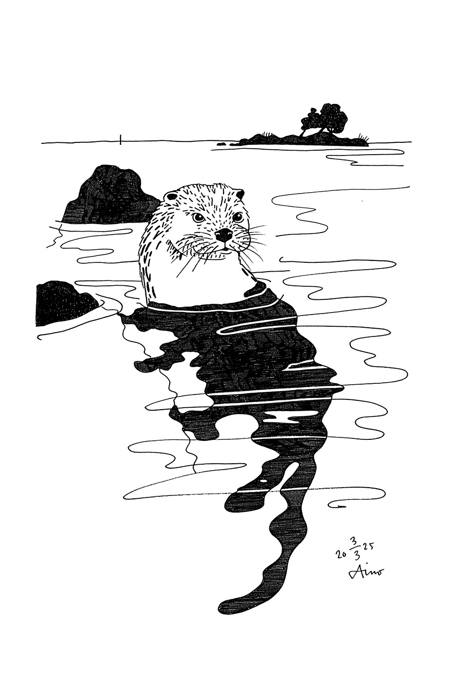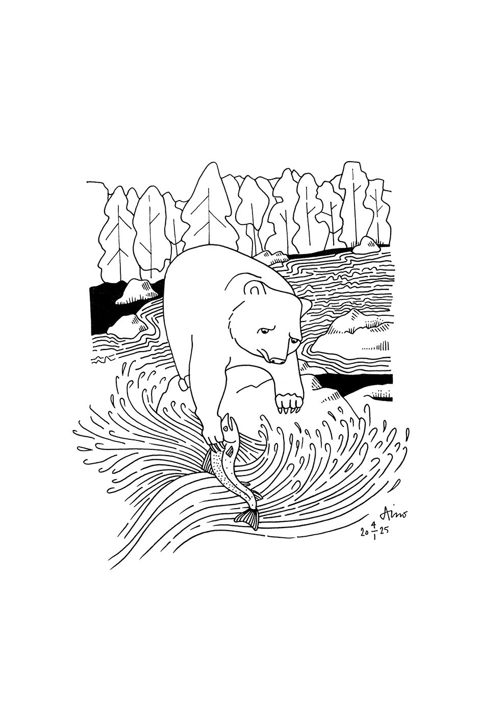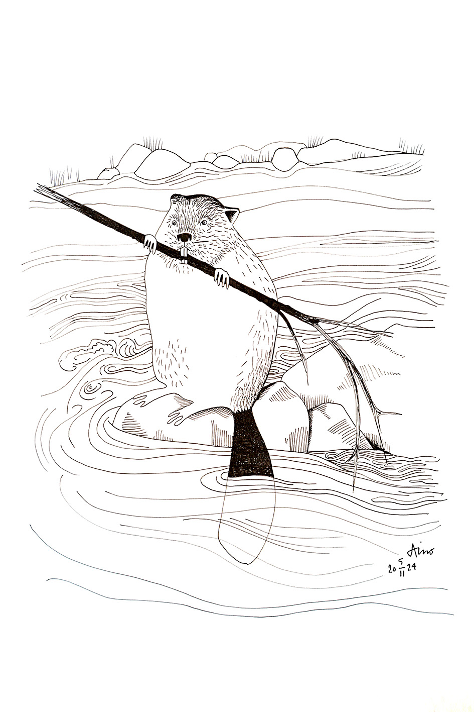 Finnish animals by the water, A4 ink on paper
